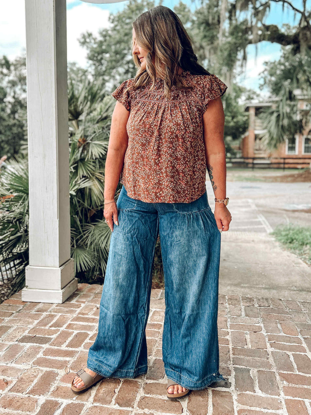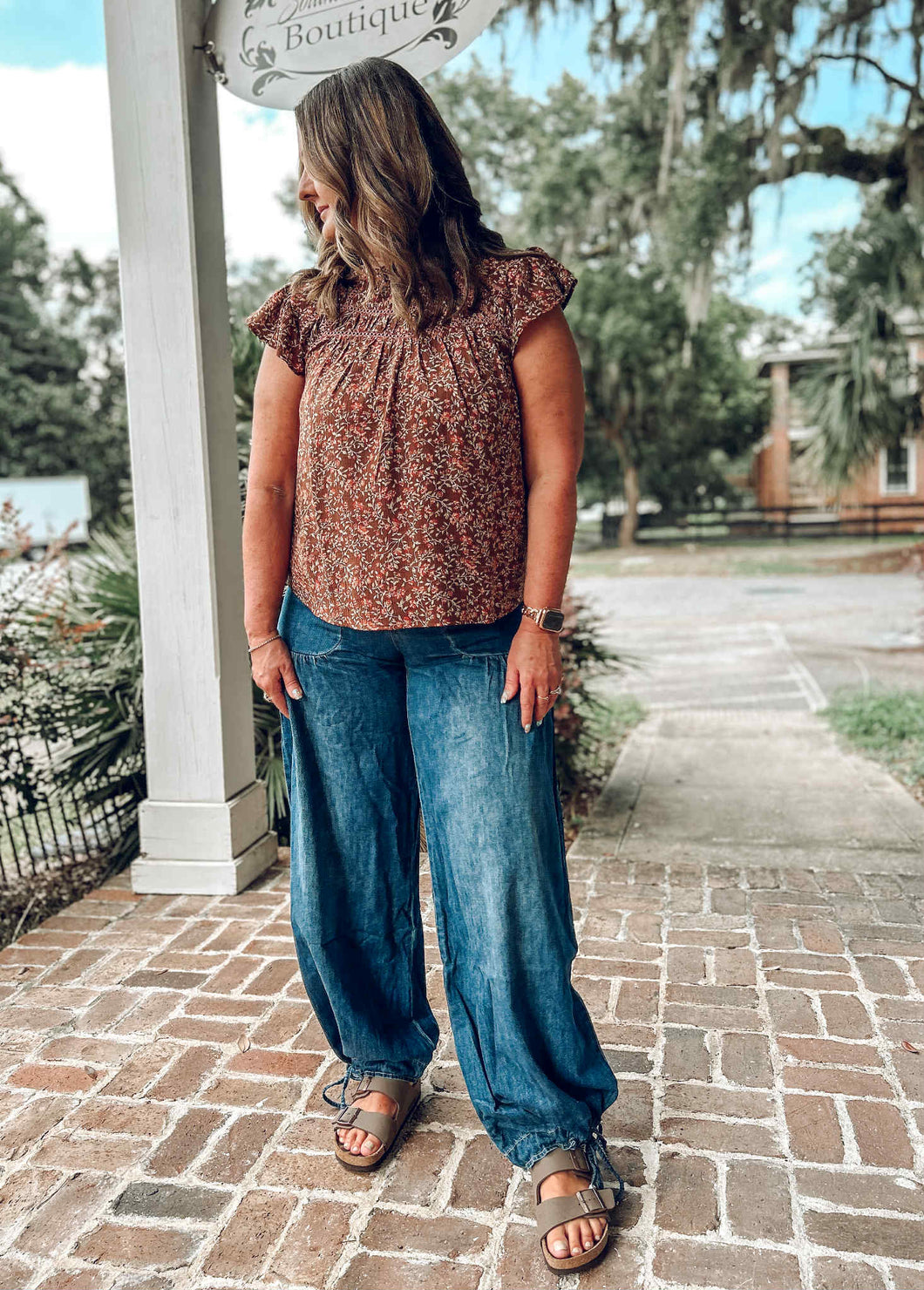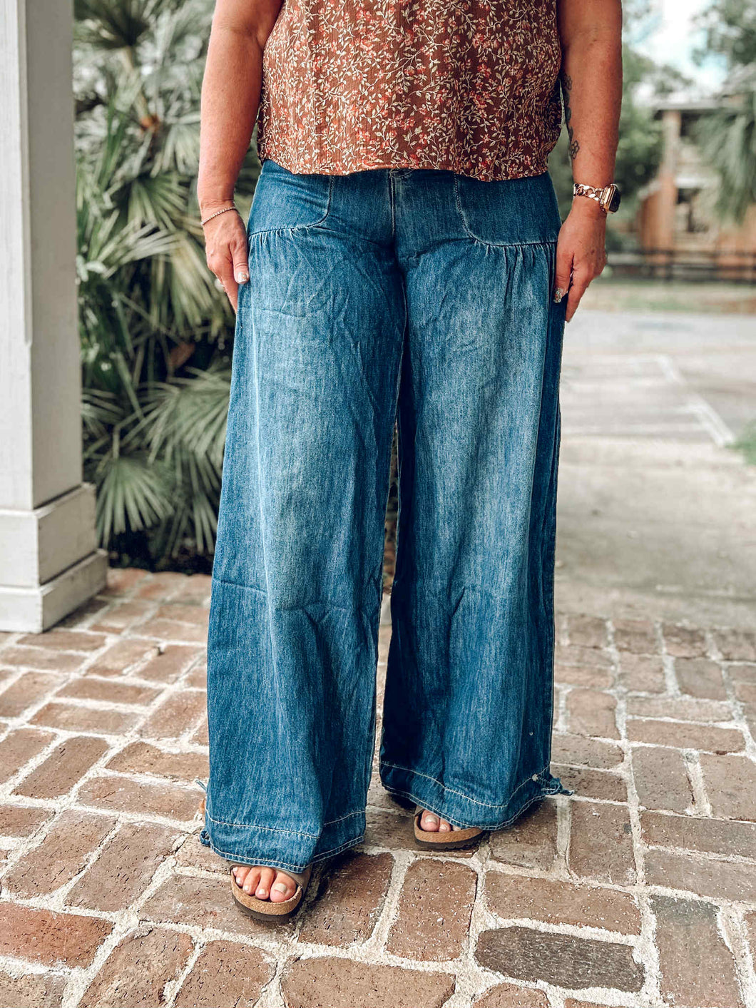 Upgrade your style with these stylish Goldie Ankle Drawstring Wide Denim pants from Veveret! Featuring a medium wash denim, relaxed wide fit, drop waist line, and adjustable drawstring on the ankle, these pants are perfect for any occasion. The cargo style button pockets in the front add a touch of uniqueness to the design. Made with 90% Cotton and 10% Polyester, these pants are not only fashionable but also comfortable. Don't miss out on these must-have pants!