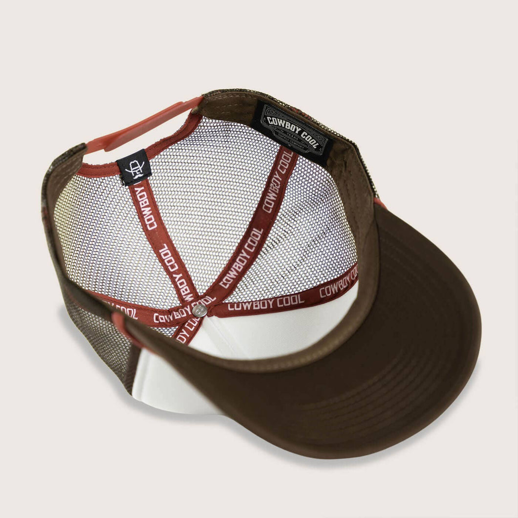 Step into a world where legends come to life with the Bigfoot Hoedown Foam Trucker Hat. Picture a moonlit night deep in the woods, where the elusive Bigfoot steps out to join the party. This 80’s old-school foam trucker hat in white and brown captures that wild, untamed spirit. With its adjustable snapback, pre-curved brim with rope accent, and structured pinch crown, it’s perfect for those who believe in the extraordinary. * Color: White/Brown * Adjustable Snapback * Pre-curved Brim with Rope Accent * Cotton Sweatband * Structured Pinch Crown * Polyester Foam/Nylon Mesh * Screen Printed Graphic * Woven Cowboy Cool Label and Icon Tag