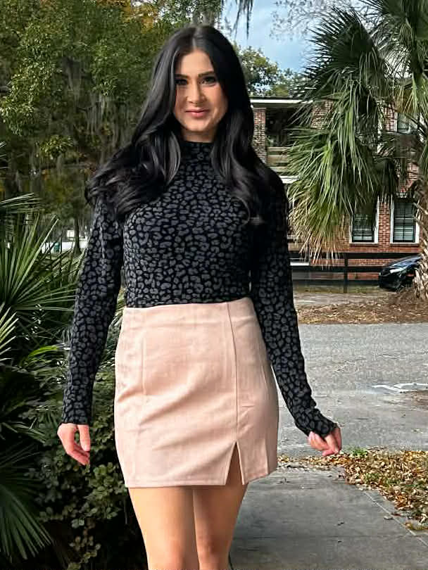 Get ready to turn heads in this sleek cheetah mock neck top! The bold leopard print paired with neutral stone tones creates an effortlessly chic look that works with everything in your closet. Long sleeves keep you cozy while the fitted silhouette flatters your figure beautifully. Perfect for layering under jackets or wearing solo, this playful piece brings just the right amount of wild style to your everyday wardrobe. A versatile essential that proves animal print is always in fashion!