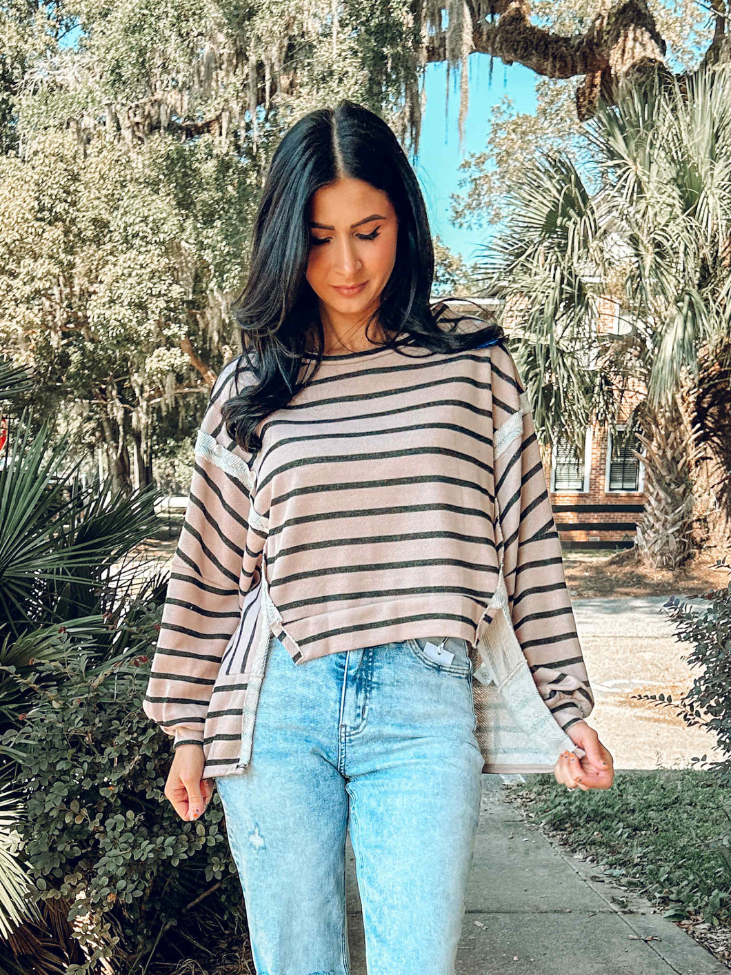 Cotton Blend Striped Top | Mocha