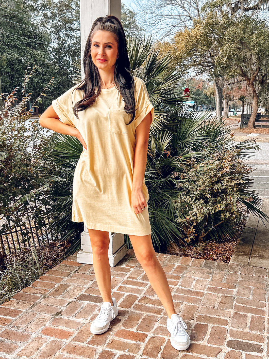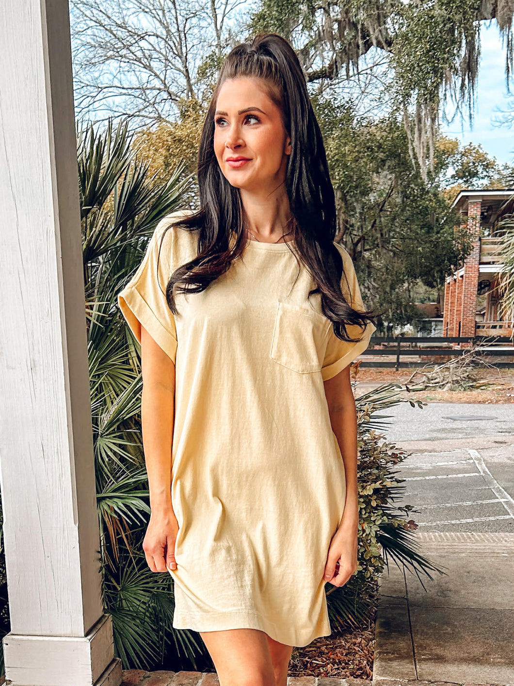 Slip into this breezy cotton tee dress and discover your new go-to for effortless style. The relaxed crewneck and rolled short sleeves give it that casual, just-threw-it-on appeal, while practical side pockets and a front patch pocket keep your hands free and your vibe intact. Soft, breathable cotton with a beautiful pigment-dye finish means you'll reach for it again and againâwhether you're running errands, meeting friends, or embracing those cozy weekend moments. Pair it with sneakers or sandals and let comfort do the talking.