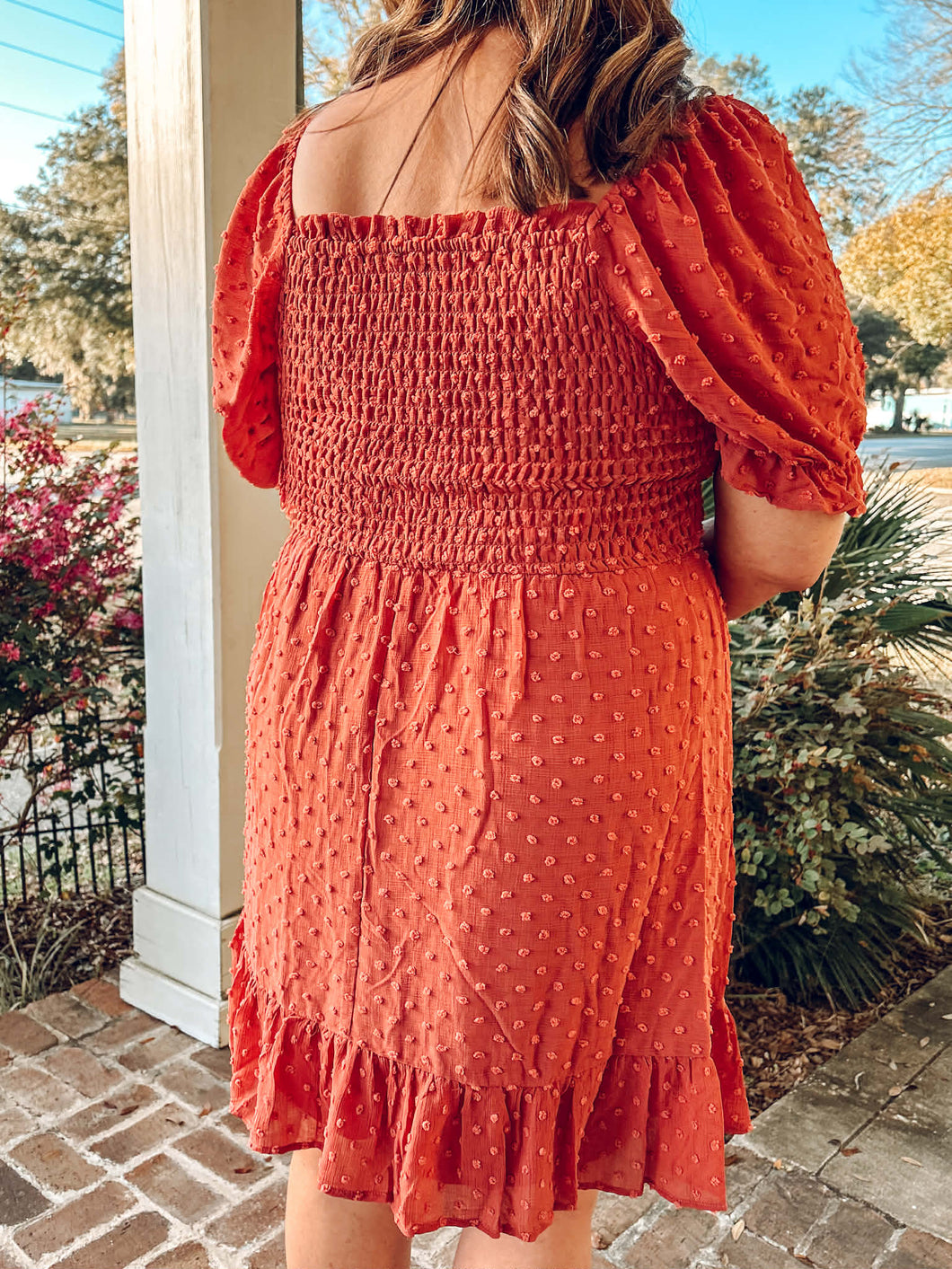 Embrace effortless elegance with this charming plus-size mini dress, featuring delicate smocked detailing and a playful dot pattern. The fitted bodice creates a flattering silhouette while the relaxed skirt offers comfortable movement. Perfect for casual outings, weekend brunches, or dressed-up occasions, this versatile piece transitions seamlessly from day to night. The soft fabric and thoughtful construction make it a wardrobe essential that feels as good as it looks.