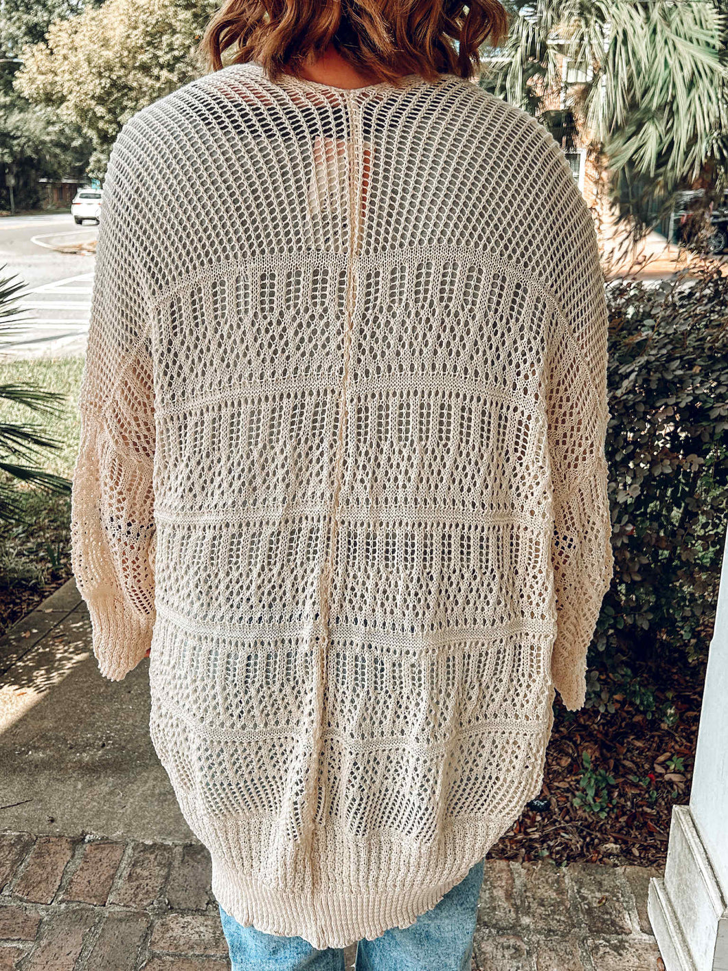 Elevate your layering game with our Relaxed Knit Cardigan in Warm Cream. Its open-front, netted design offers effortless style and comfort, perfect for any season. Whether draped over a dress or paired with your favorite jeans, this soft, relaxed-fit cardigan adds a touch of casual elegance to every look. A versatile wardrobe essential that transitions smoothly from day to night.