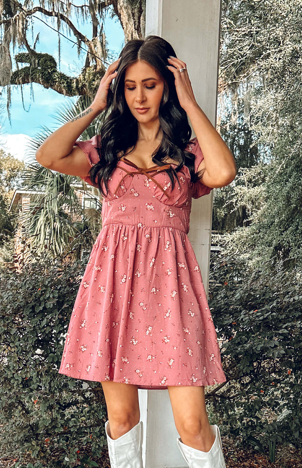 Flirt with florals in this charming mini dress that's equal parts sweet and sassy. The sweetheart neckline and puff sleeves deliver vintage-inspired romance, while the A-line silhouette flatters every figure. Back smocking adds dimension, contrast trim frames the details, and a front self-tie cinches your waist for a personalized fit. Lined for comfort and confidence. Perfect for date night, brunch, or any moment that calls for a little extra charm.
