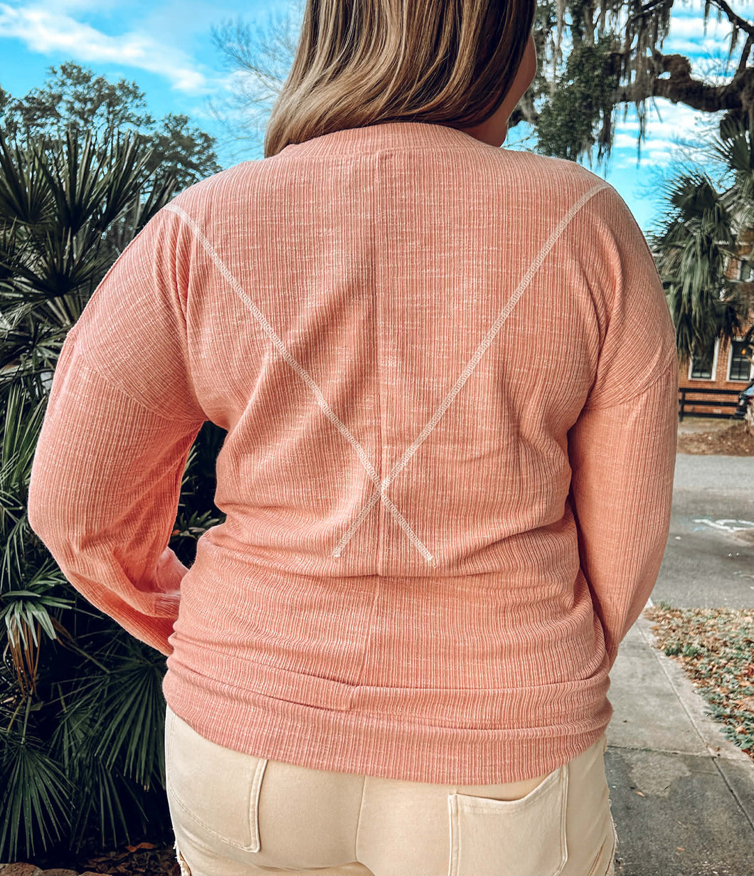 Reverse Stitch Ribbed Top | Pink
