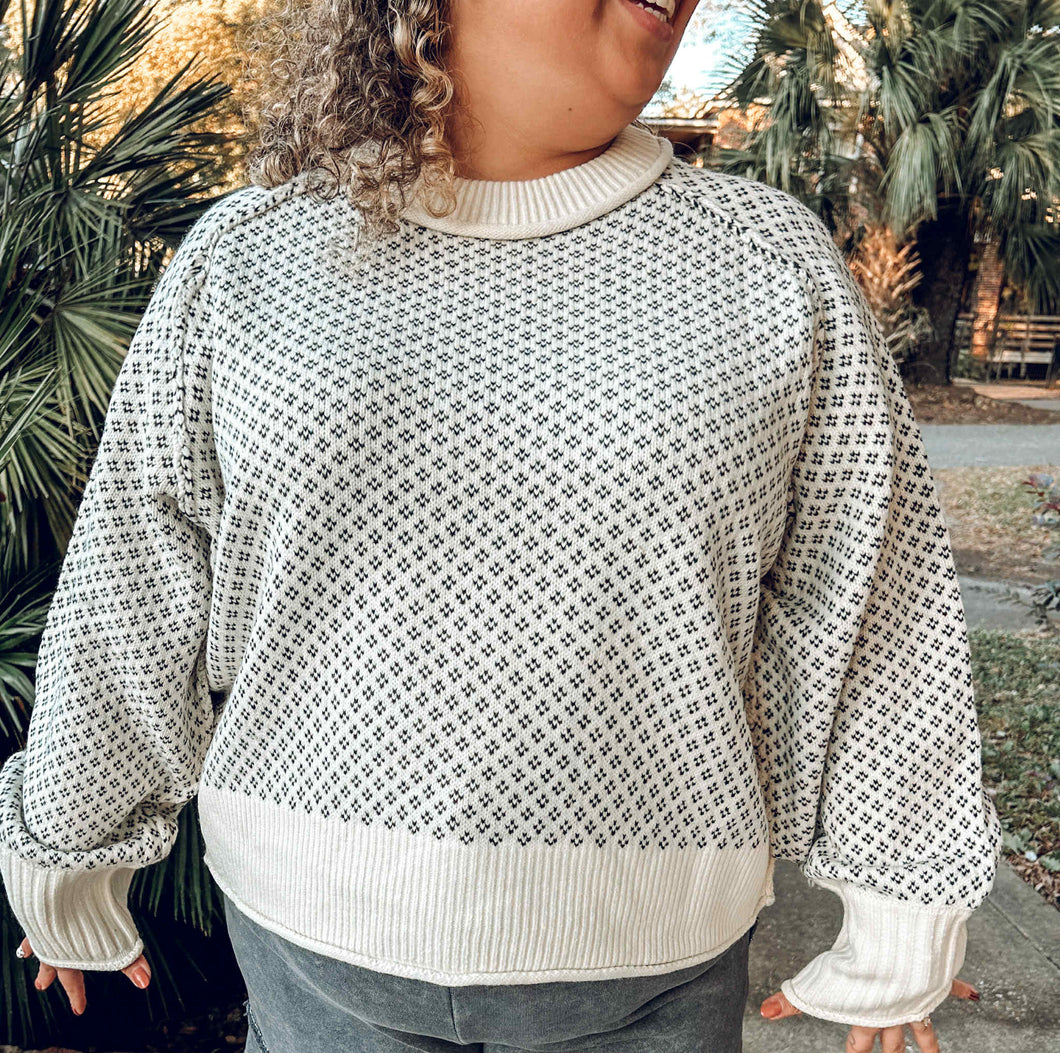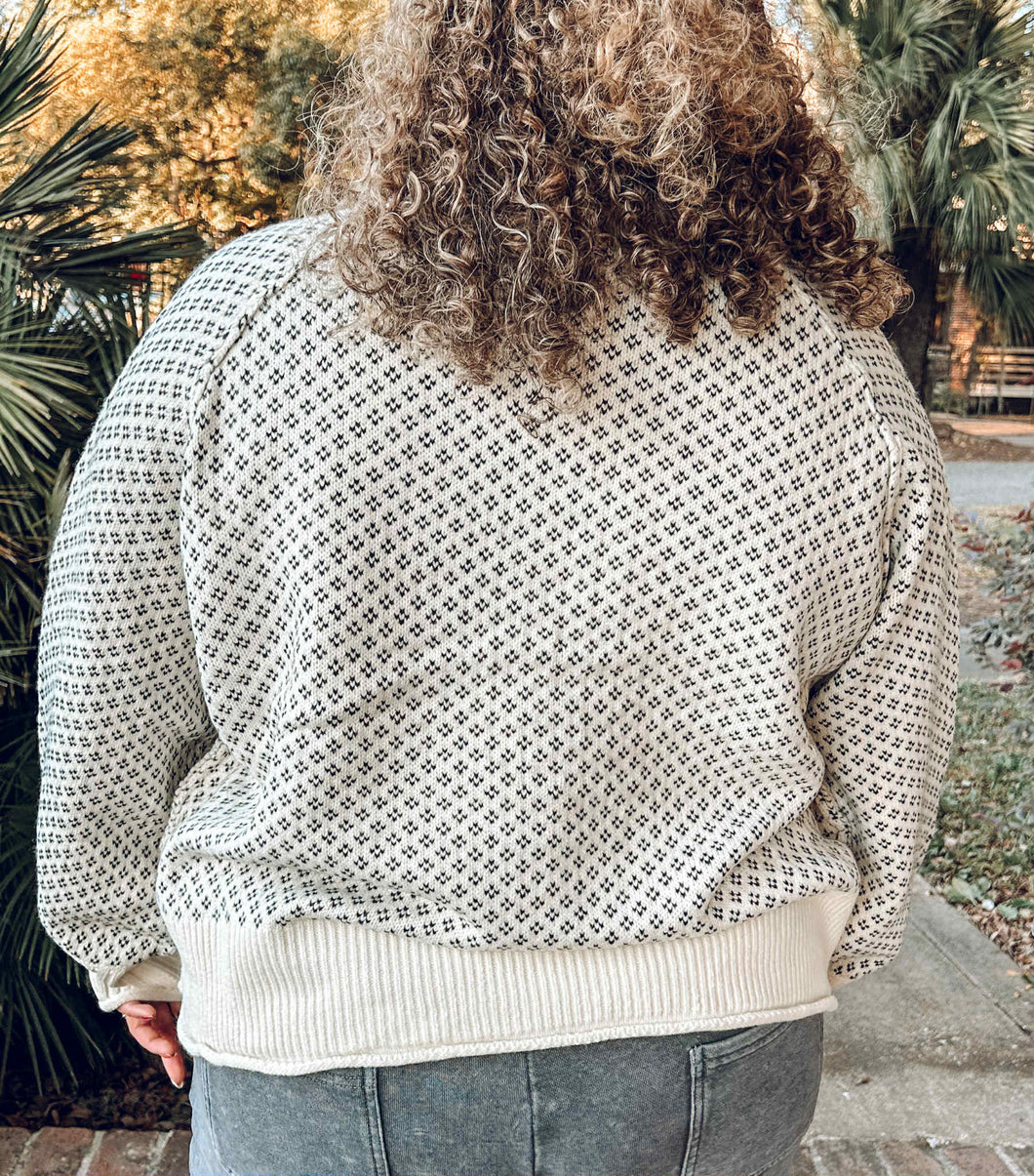 Wrap yourself in effortless elegance with this patterned cozy sweater, featuring a classic cream and black design that transitions seamlessly from casual days to evening gatherings. The mock neck provides a flattering silhouette while delivering extra warmth, making it the perfect layering piece for cooler seasons. Soft, comfortable fabric invites you to stay cozy without sacrificing style. Whether paired with jeans or dressed up with tailored trousers, this versatile sweater becomes an instant wardrobe essential that you'll reach for again and again.