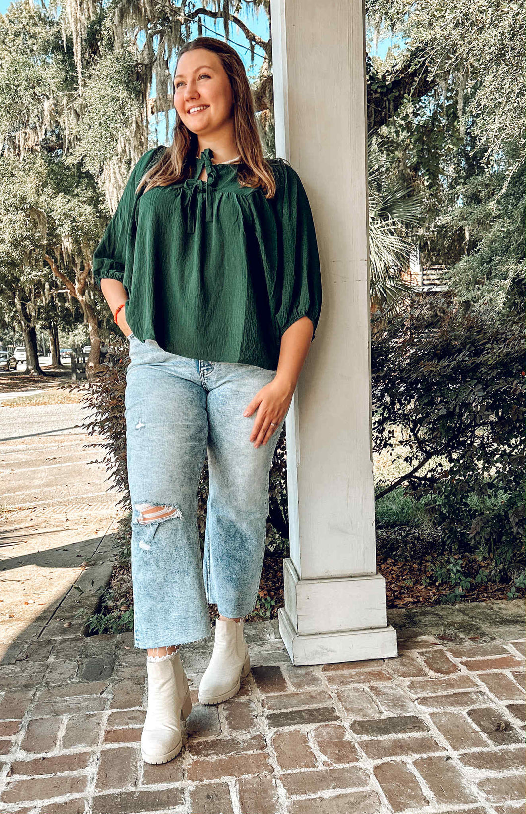 Breathe easy in this charming batwing top, designed with solid airflow fabric that keeps you cool and comfortable all day long. The relaxed 3/4" sleeves provide the perfect balance of coverage and ventilation, while the delicate front tie ribbon at the neckline adds an elegant, feminine touch. Ideal for warm weather styling, this versatile piece transitions seamlessly from casual outings to laid-back gatherings. The flowing silhouette flatters every figure, making it a wardrobe essential you'll reach for again and again.